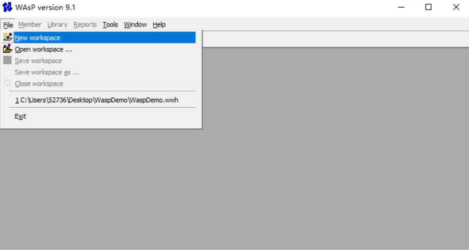 打开软件,点击“File”菜单,然后点击次级菜单“New workspace”,建立工程目录