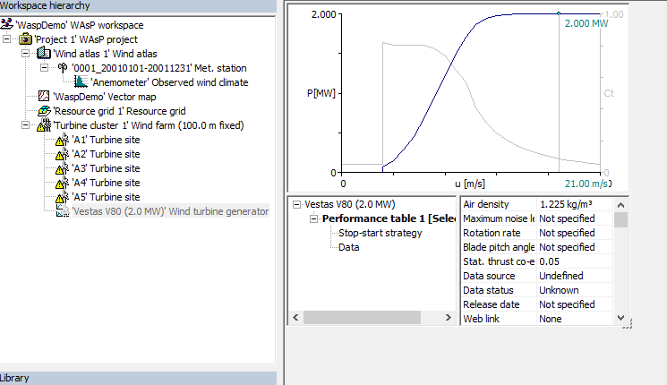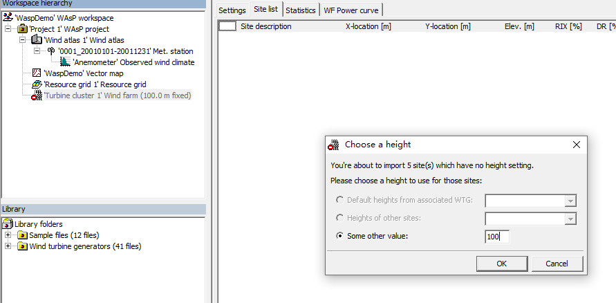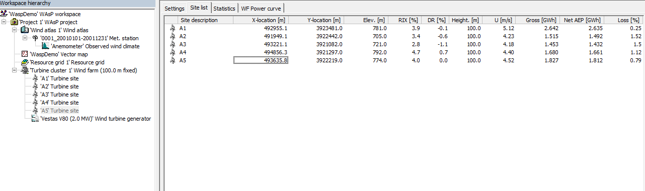 在“Wind farm”的“Site list”下,可以预览计算结果