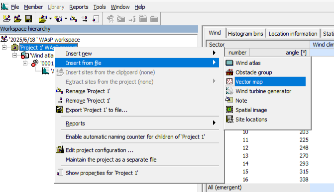 在Project上右击,选择“Insert new”,并选择次级菜单“Wind atlas”